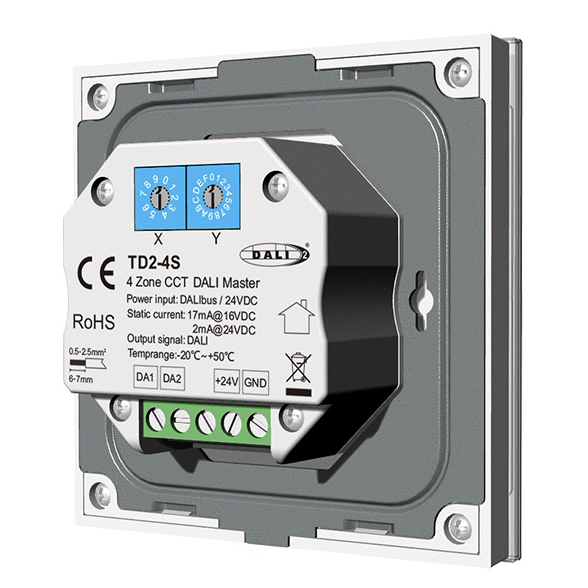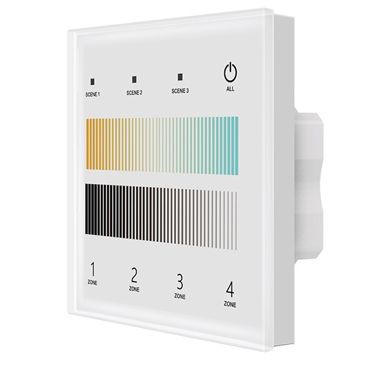 1. Easy setting DALI Address. 2. 4 zones individualy control or synchronously control. 3. Ultra sensitive high strength glass touch panel. 4. Comply with DALl standard protocol and support DT8 type. |